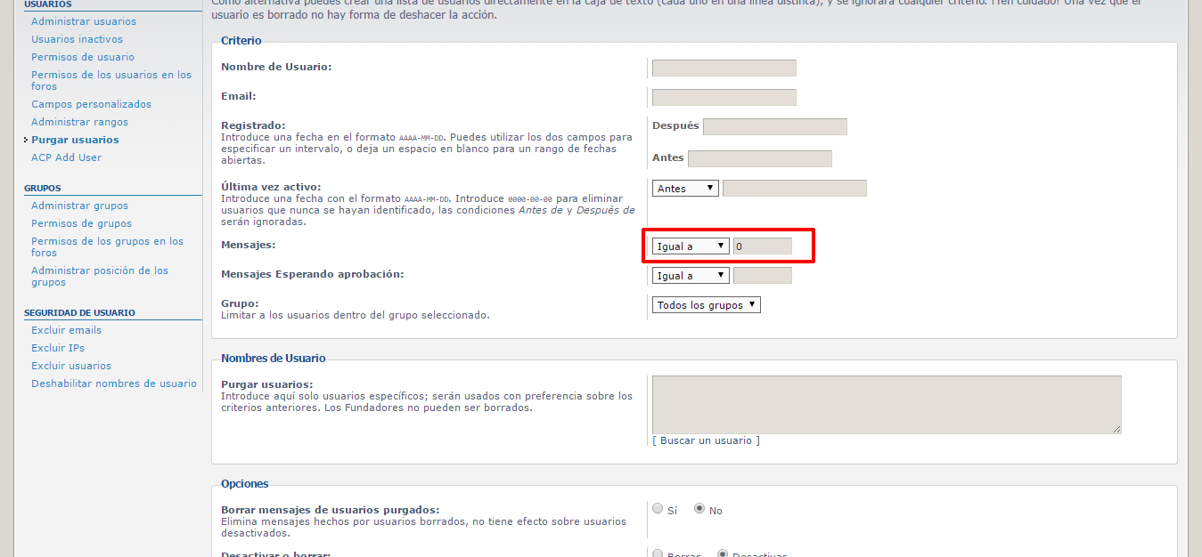 mi criterio de purgar es, mensajes 0, todos los user registrados y tengan menajes 0.
