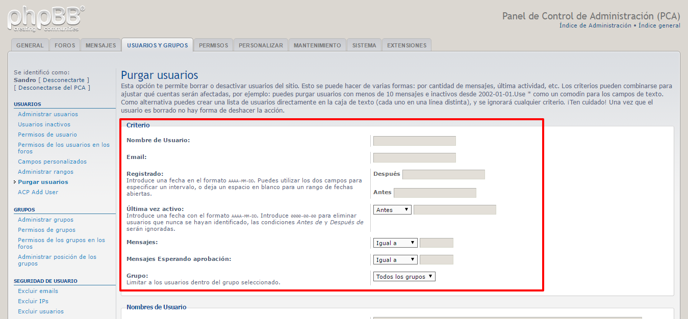 Purgar usuarios - 3.1.8 Tema Solucionado