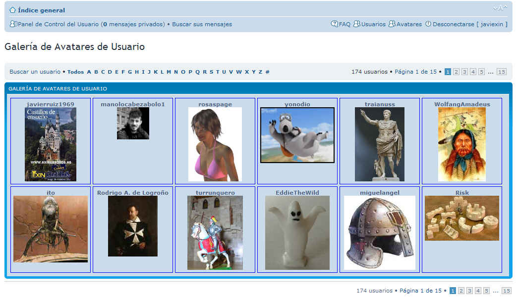Y para utilizar la nueva paginación (muchas gracias, Gabriel/leviatan!), hay que utilizar memberlist.php?mode=avatars&limit=50 (50 avatares por página), o memberlist.php?mode=avatars&limit=0 (todos los avatares existentes).