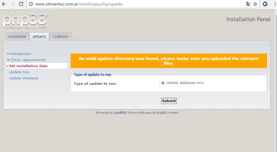 Fracasé por 2da vez al intentar actualizar a phpbb 3.2.0.