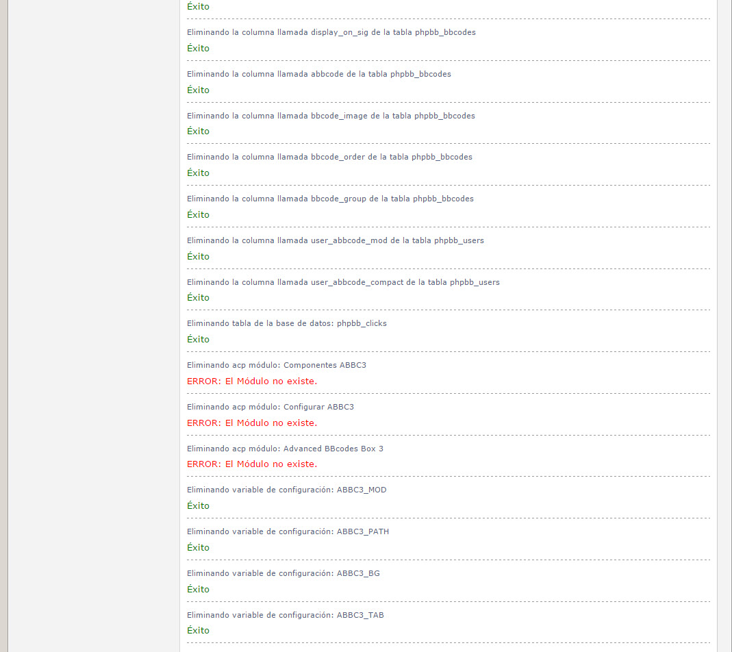 Hola amigos! Tratando de desinstalar mod por mod para luego actualizar el foro a la nueva version 3.1.X me saltó un error.