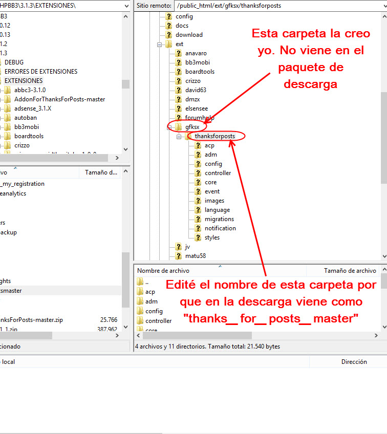 luego vas al ftp y en la carpeta ext, das crear directorio y creas este: gfksx/ThanksForPosts