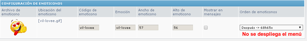 Subo nuevos emoticonos al servidor, voy al ACP y "Añadir múltiples emoticonos", hasta ahí todo bien porque aparecen, pero...