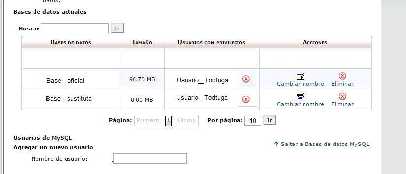 2 – CREAR desde el Cpanel (Del servidor de nuestro foro) una nueva base de datos con el nombre de “Base_sustituta” (con la misma password y el mismo nombre de usuario de la “Base_oficial”.
