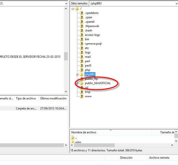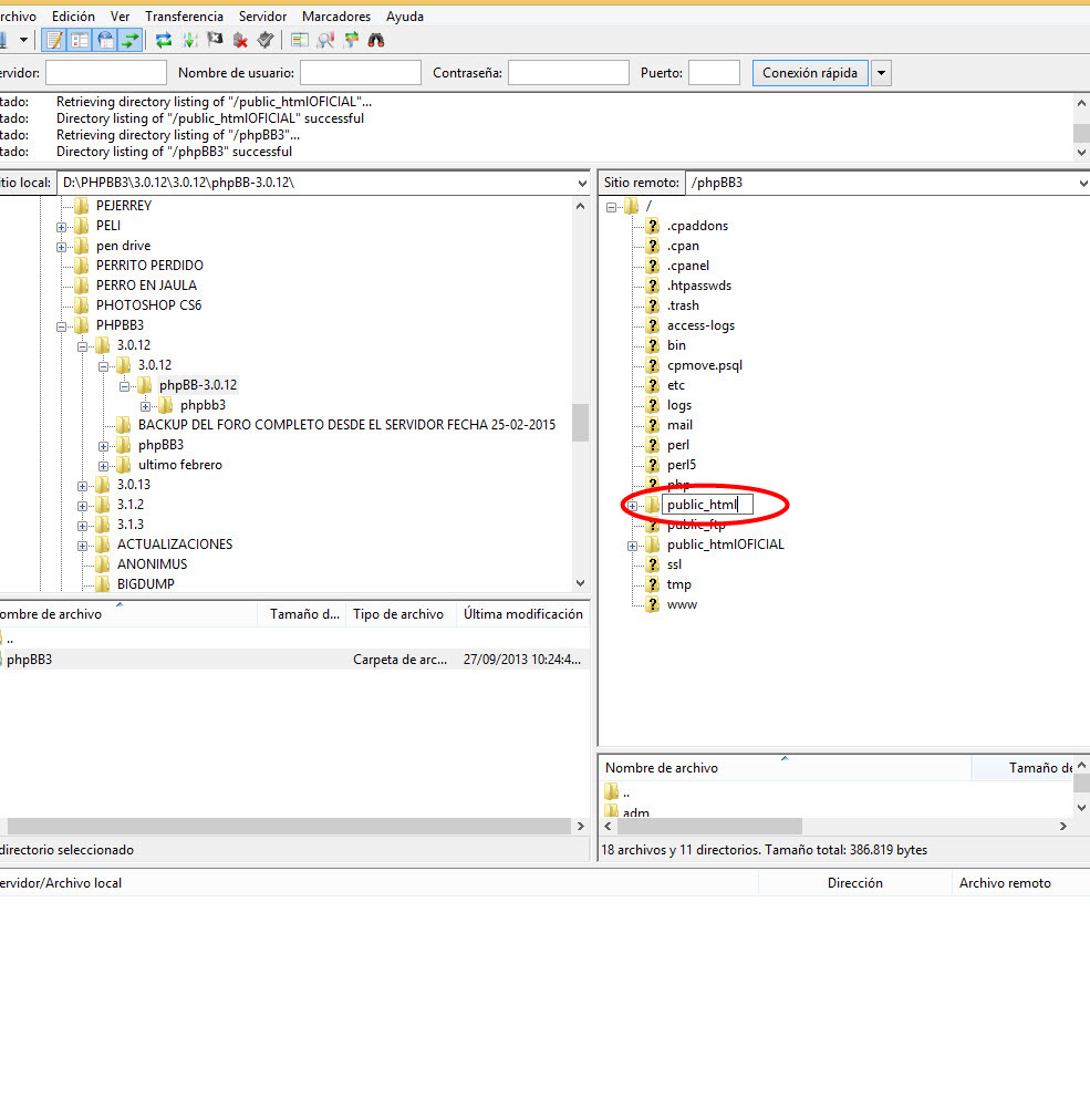 public_html” con el nombre de “public_htmlOFICIAL”.phpbb3” (de la versión limpia) con el nombre de “public_html”.