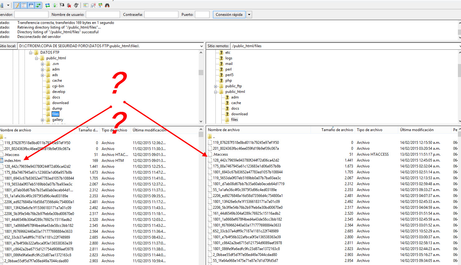 Este video es SIN SONIDO pero puede verse claramente cómo despues de subir los archivos y al pasar unos segundos los mismos desaparecen...y es como que nunca subieron. Incluso tenian codificacion "UTF-8" y los pasé a "UTF-8 Sin Bom"