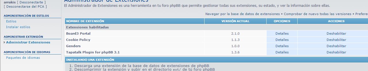 Adjunto captura de las extensiones.