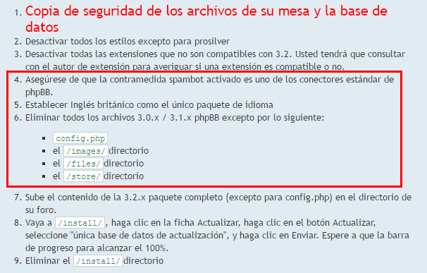 Lei las instrucciones que estan en ingles y las traduje al español y despues de leer me quedaron las siguientes dudas - el punto 1- listo! ya hice las copias de seguridad de todos los archivos del foro incluso de la base de datos.