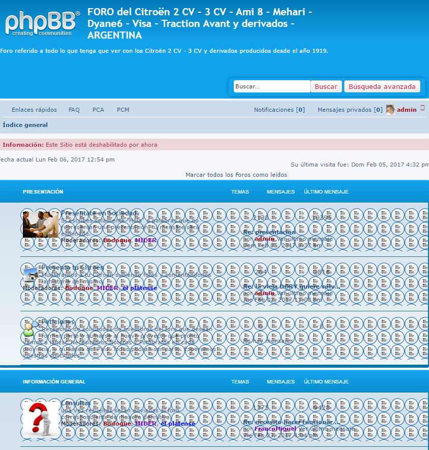Extensiones o MODs Instalados:Activity Stats 1.2.3-DEV, Advanced BBCode Box 3.1.4., Announcements on index 1.0.1., Annual Stars 1.0.0., Board Announcements 1.0.6., Board Rules 1.0.4., Category Background Image 1.0.1, Fade header 1.1.5. , Google AdSense 1.0.0., Google Analytics 1.0.2., Google Translator 1.0.0., Lightbox 1.0.5., National Flags 2.1.3., Paypal Donation 1.0.3., PM Welcome 1.0.1., Poster IP in Viewtopic 1.0.2., Red title for new topic and new reply 1.0.2., Right Side Random Image 3.1.0., Site logo 1.0.0-b4., Thanks for posts 2.0.2., Upload Extensions 3.1.2., Youtube Videos Gallery 1.0.3.