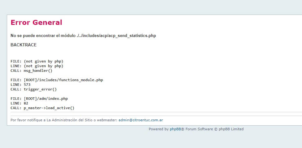 Cuando quiero entrar a estadisticas me salta error general Y cuando quiero entrar a administrar adjuntos y me salta el DEBUG con el siguiente error: