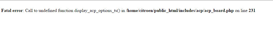 Fatal error: Call to undefined function display_acp_options_ts() in /home/citroen/public_html/includes/acp/acp_board.php on line 231Código: Seleccionar todo