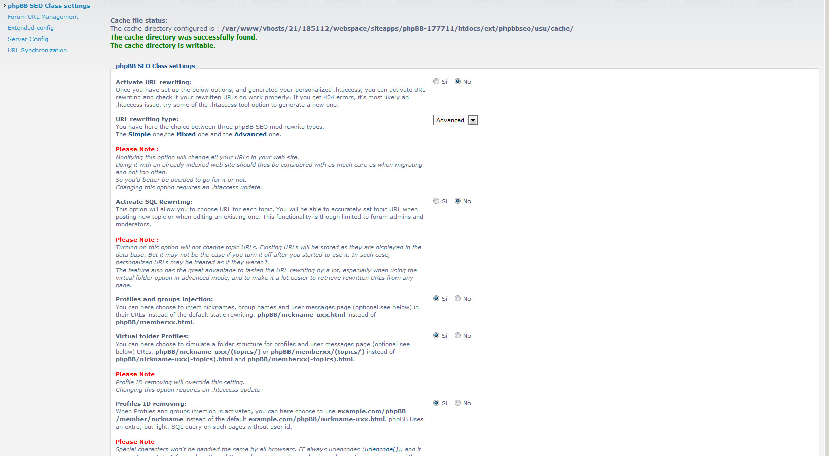 Extensiones instaladas: Advanced BBCode Box 3.1.2, Genders 1.0.0, National Flags 1.0.3, phpBB3 SEO Sitemap 1.0.4, phpBB SEO Ultimate SEO URL 2.0.0-b2, Tapatalk Plugin for phpBB 3.1 1.3.3, Thanks for posts 2.0.2, Top Five 1.0.2, Zodiacs