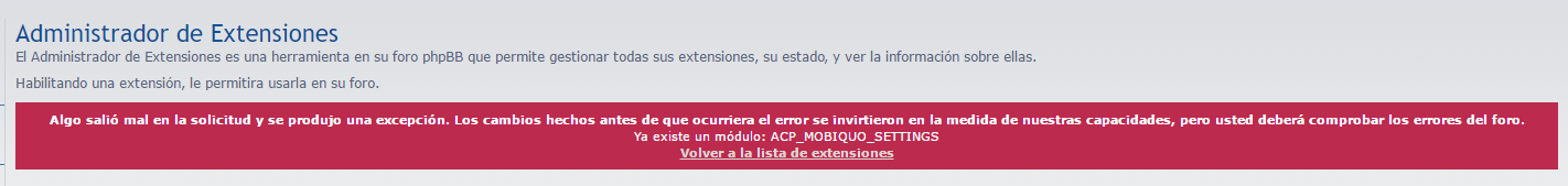 Elimina todo lo de la extensión, limpia cache general del foro y vuelve a intalar (aunque no lo recomiendo).