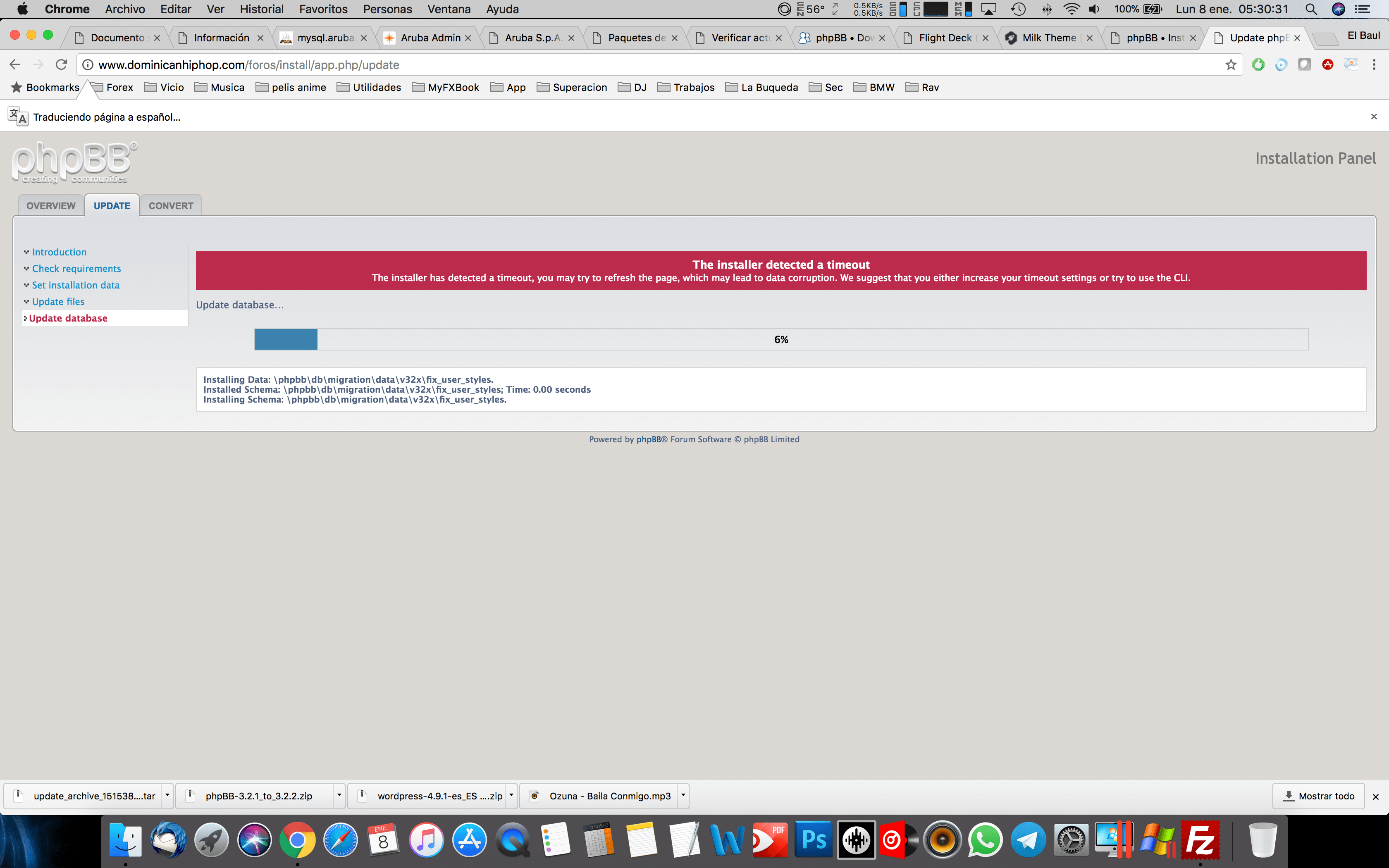 el problema sale cuando empieza a actualizar la base de datos, un problema de timeout