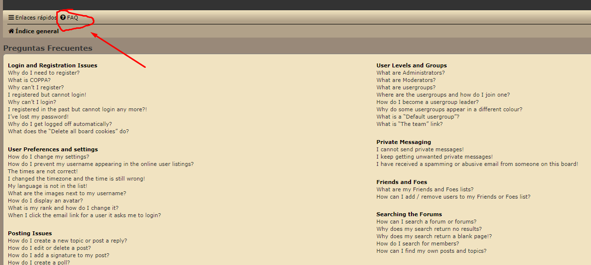 Re: Cambiar FAQ's a Español o deshabilitar opcion Tema Solucionado