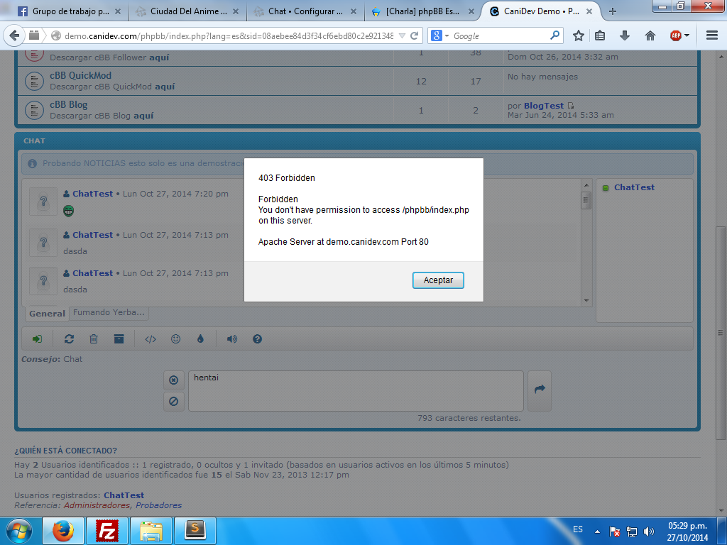 En el demo, si intentas escribir un post en el foro con dicha palabra te dará el mismo error.