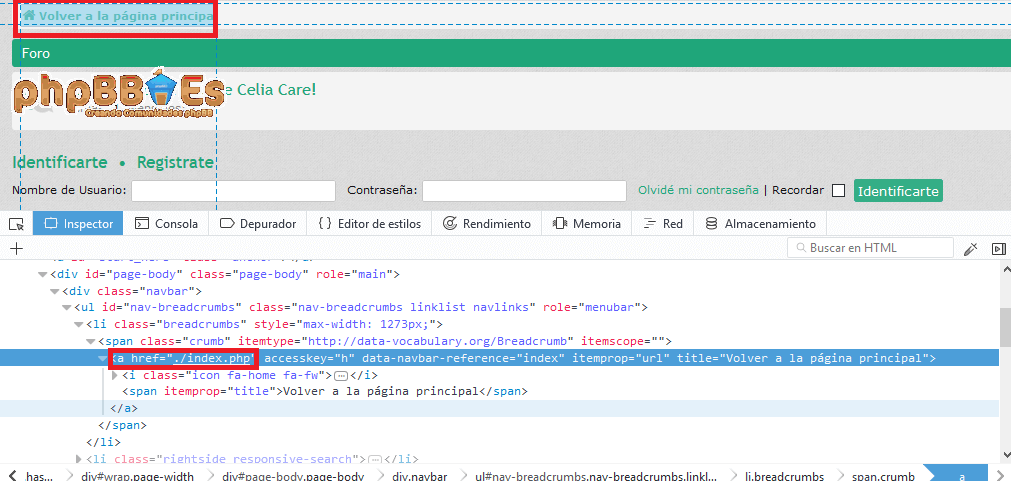 Lo único que quiero hacer es cambiar el enlace de la página, en donde el adjunto dice: "Volver a la página principal", o mejor se aprecia como lo encerrado en rojo. Previamente ese texto decía "Índice general". El enlace que tiene es para index.php, pero yo quiero cambiarlo, y no encuentro el al archivo o la manera de hacerlo. ¿Me podrían decir cómo podría cambiarle el enlace?