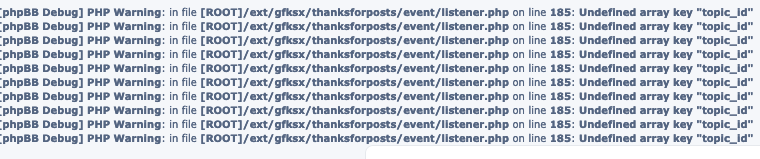 Pues me encuentro que cuando activo la de thanks for post despues de actualizarla a su ultima versión me sale esto arriba del foro.